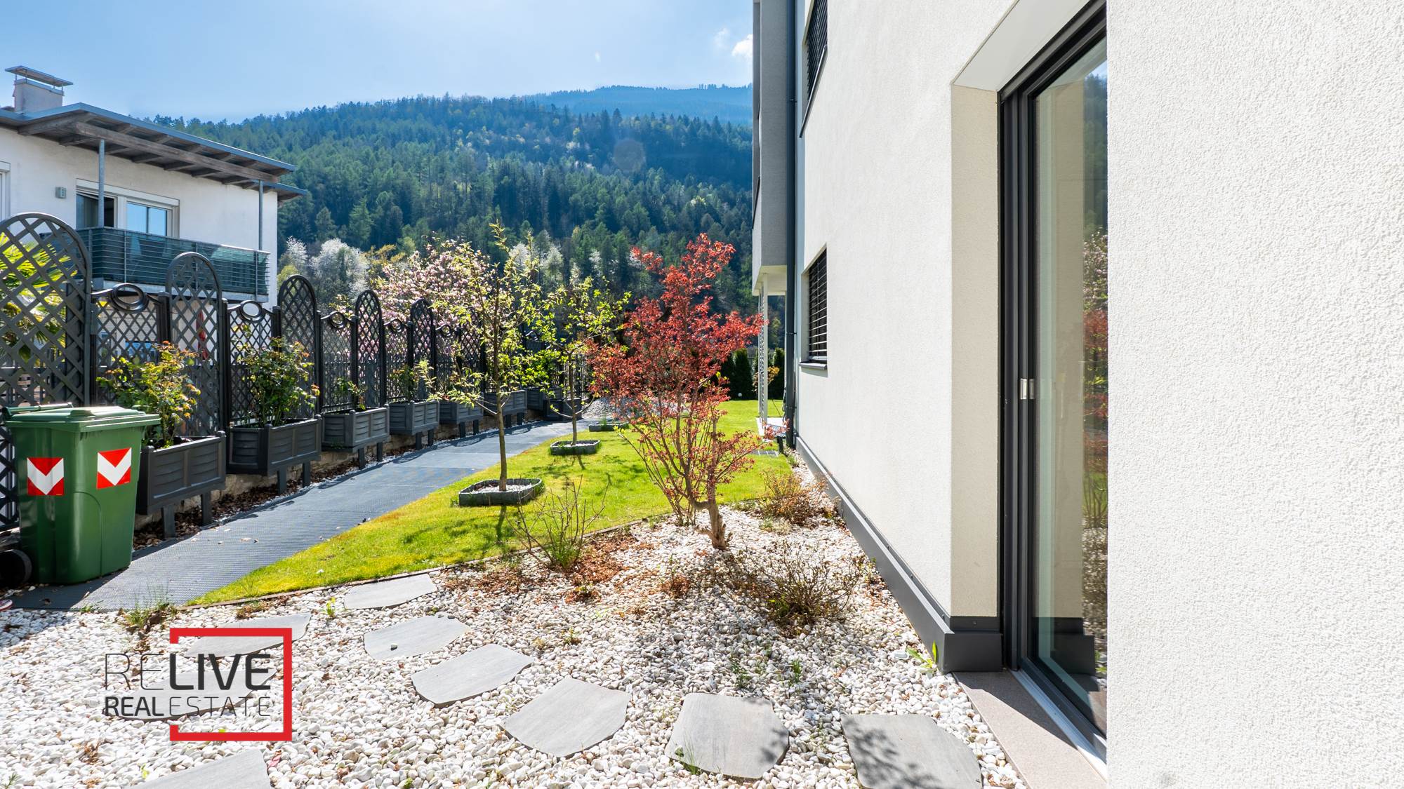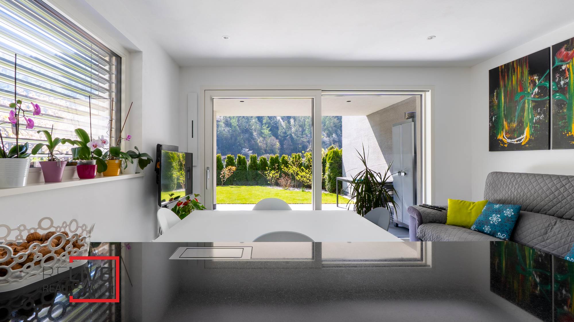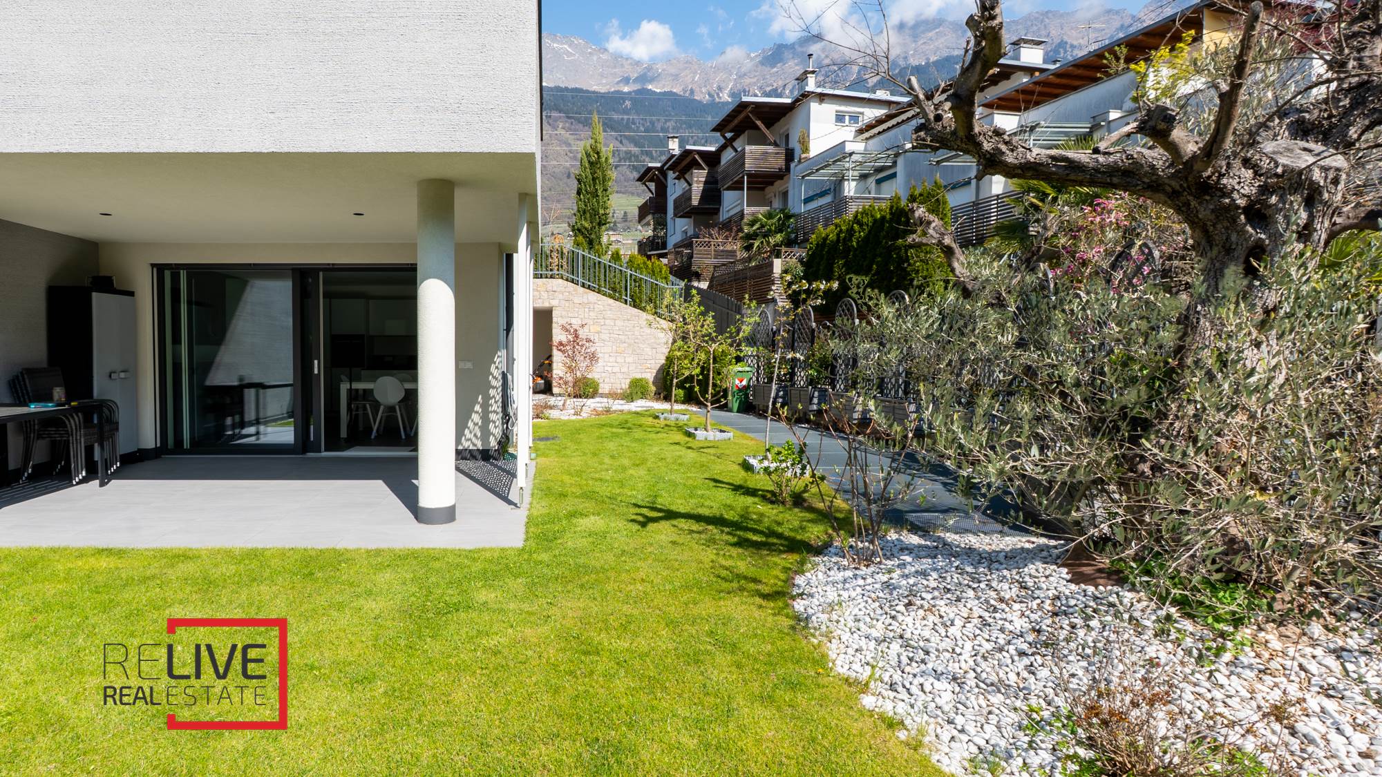 In a quiet and sunny hillside area of Parcines, a refined ground-floor two-bedroom apartment is offered for sale, enhanced by a beautifully maintained private garden of 100 m², perfect for enjoying outdoor relaxation during the warmer season thanks to its excellent south-east exposure. The property features a bright living room with open-plan kitchen, two bedrooms and a windowed bathroom. The 16 m² covered terrace serves as a natural extension of the living space and is ideal for outdoor dining. The apartment is part of an exclusive and recently built three-storey residence, constructed to very high quality standards. Its modern architecture and refined finishes blend harmoniously with the surrounding landscape, offering an open panoramic view over Val Venosta. The property is completed by a spacious double garage with two automatic sectional doors, offered for sale at € 60.000, providing additional comfort and practicality. Electric shutters, video intercom, PVC triple-glazed windows, lift and access to the communal park are also included. An ideal solution for those seeking tranquillity, high construction quality and enjoyable outdoor areas in a premium natural setting.