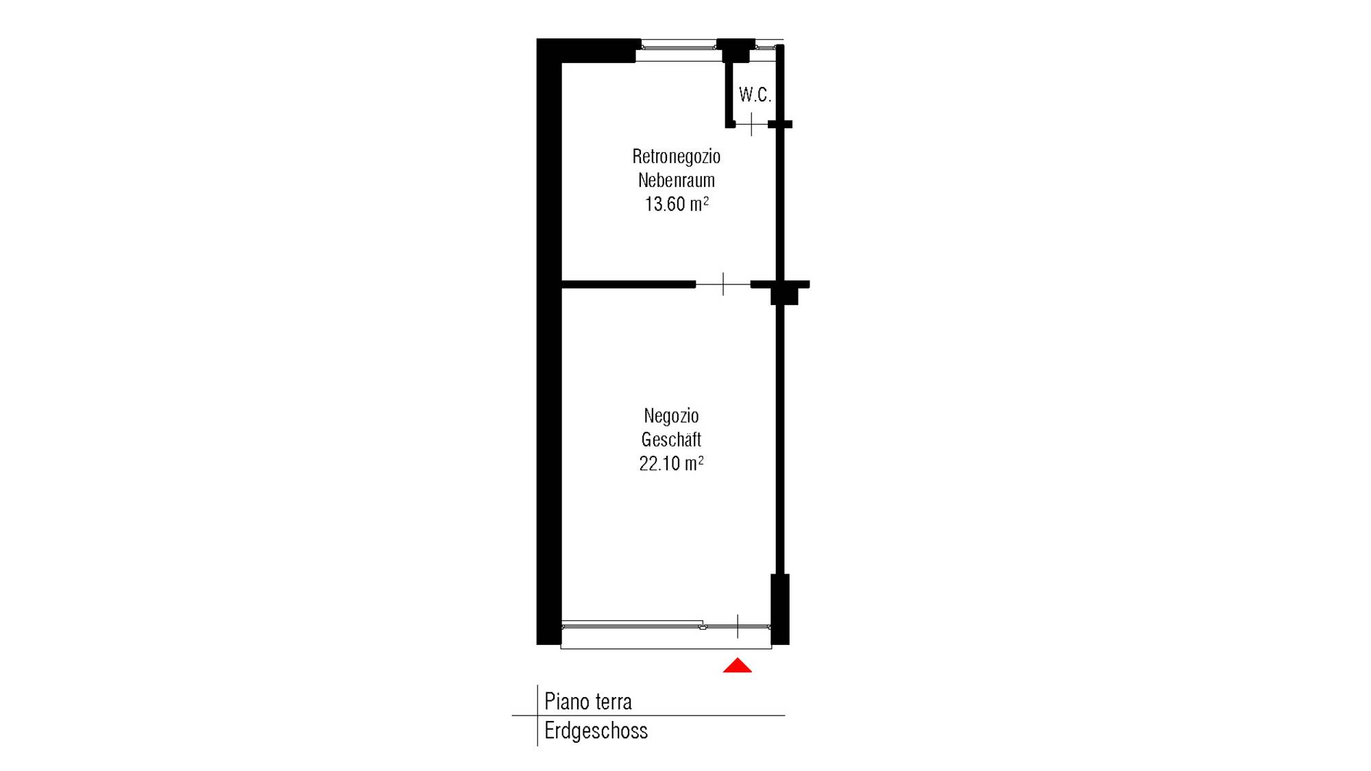 L’immobile si compone di un locale principale ad uso commerciale di circa 20 m², ideale per attività di vendita o come studio professionale, e di un retro di circa 15 m² con servizio igienico finestrato. Lo spazio risulta funzionale, facilmente personalizzabile e adatto a diverse tipologie di attività.
