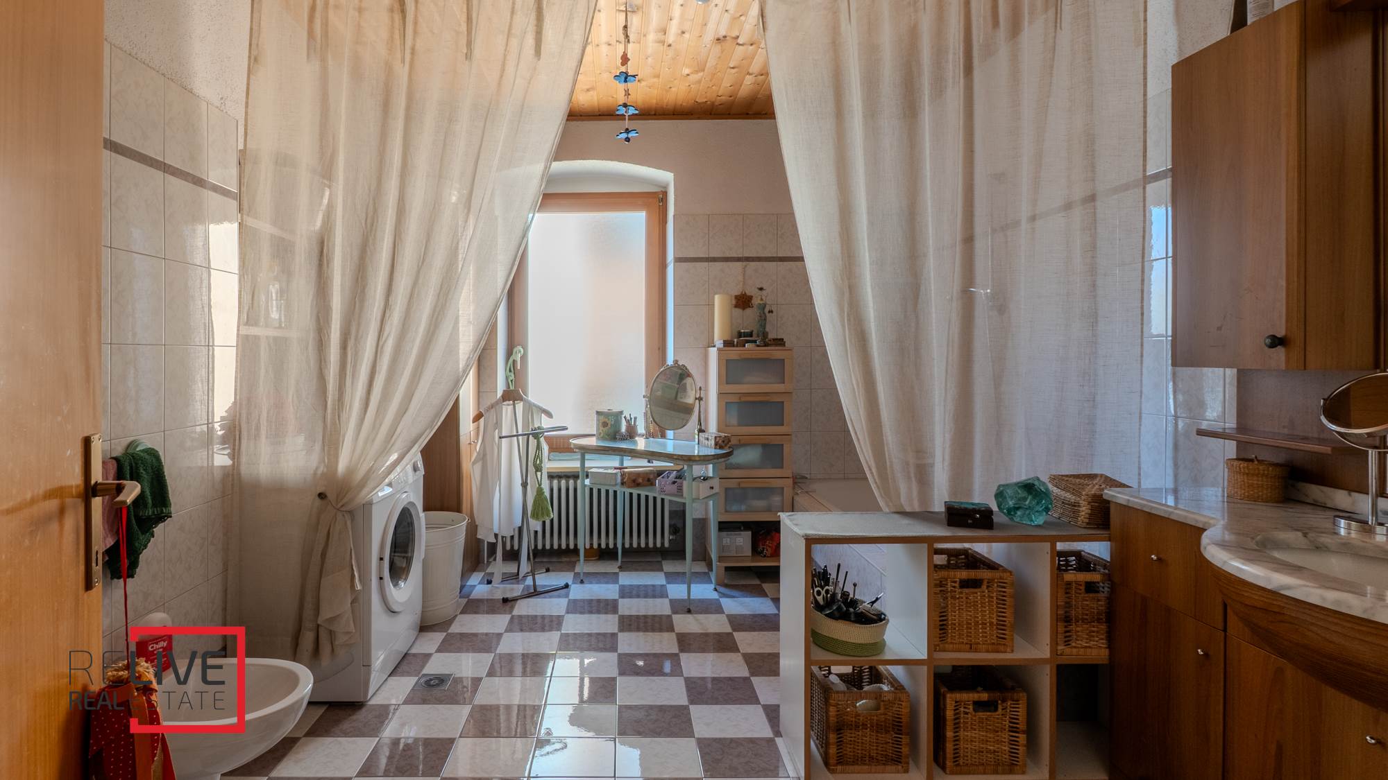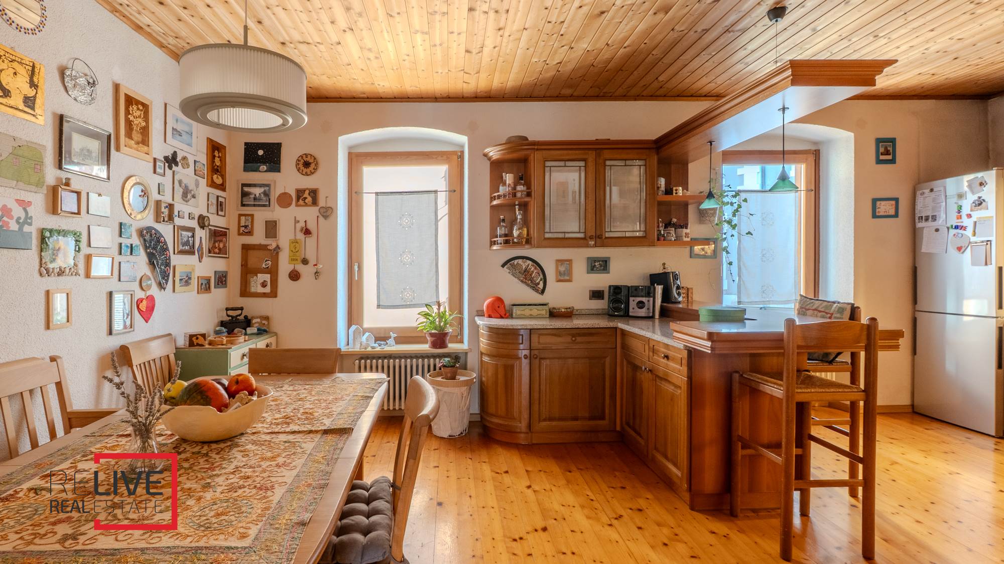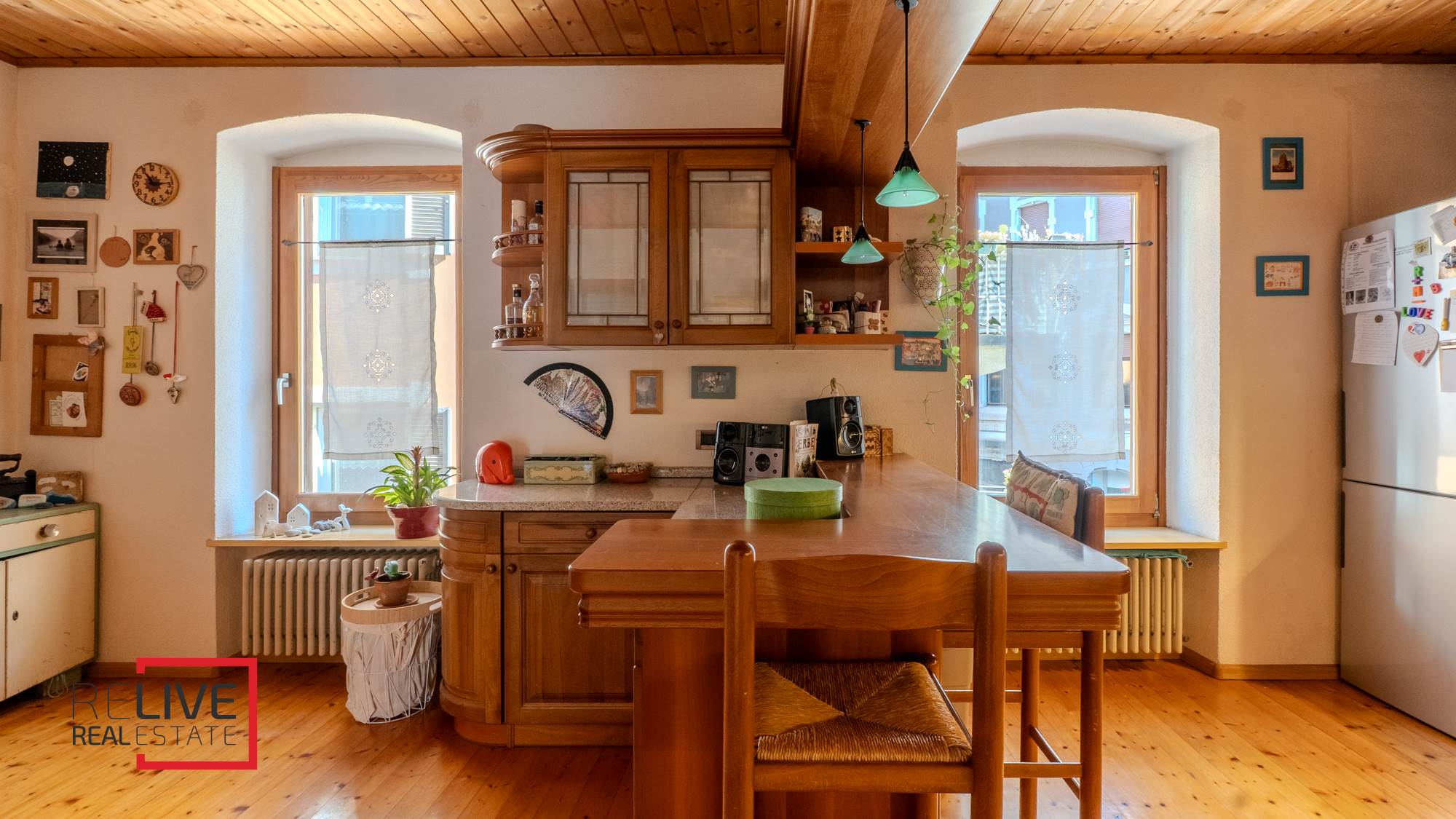 Con una superficie calpestabile di quasi 120 m², l’appartamento si compone di ampio soggiorno con camino e stufa in maiolica, cucina abitabile, due camere da letto e due bagni finestrati. Gli ambienti, spaziosi e ben distribuiti, sono impreziositi da ampie finestre che donano luminosità e calore naturale, mentre la tenda da sole garantisce comfort e privacy nelle giornate più soleggiate.