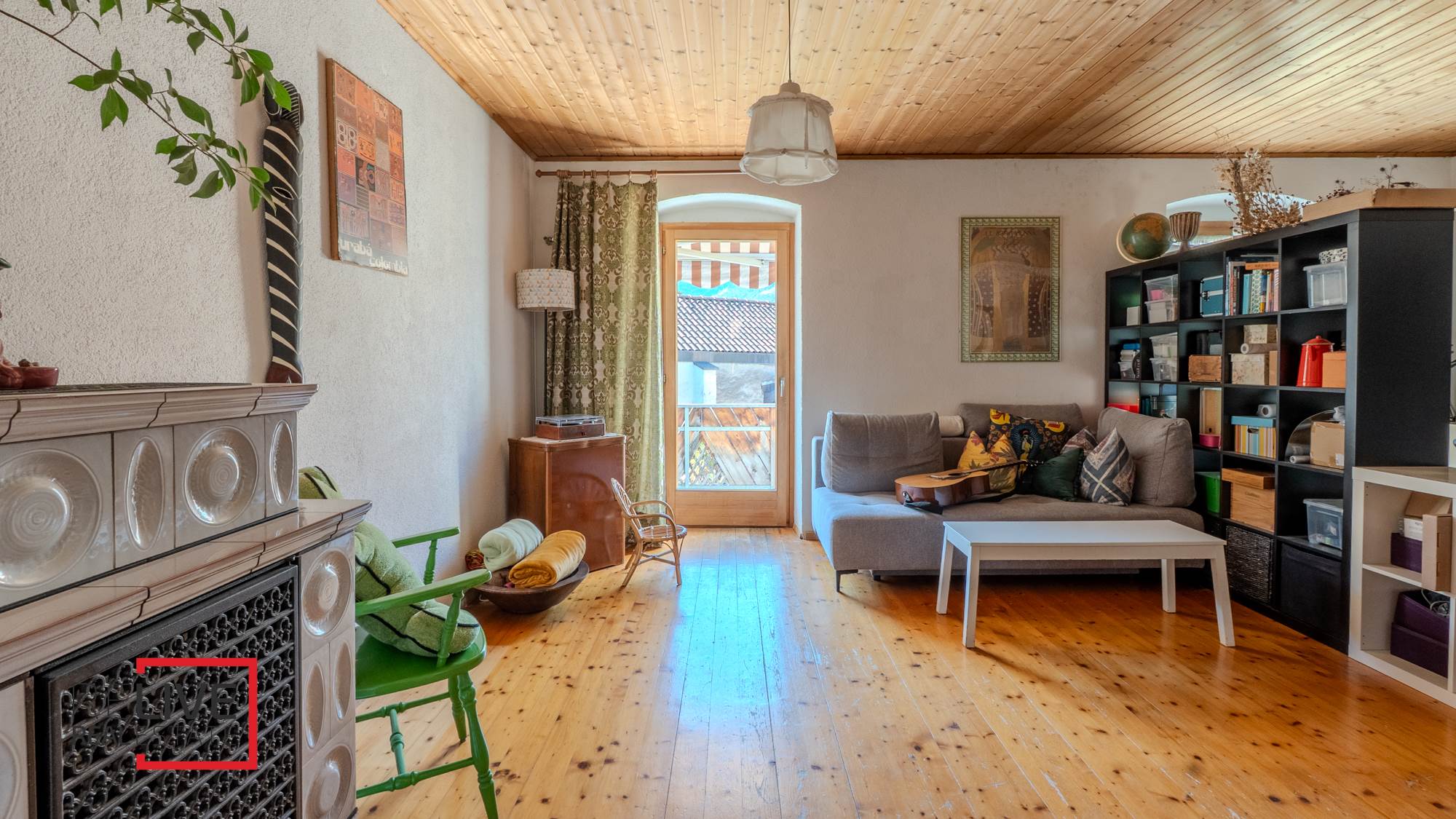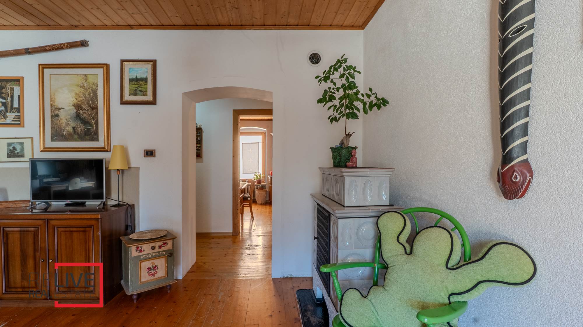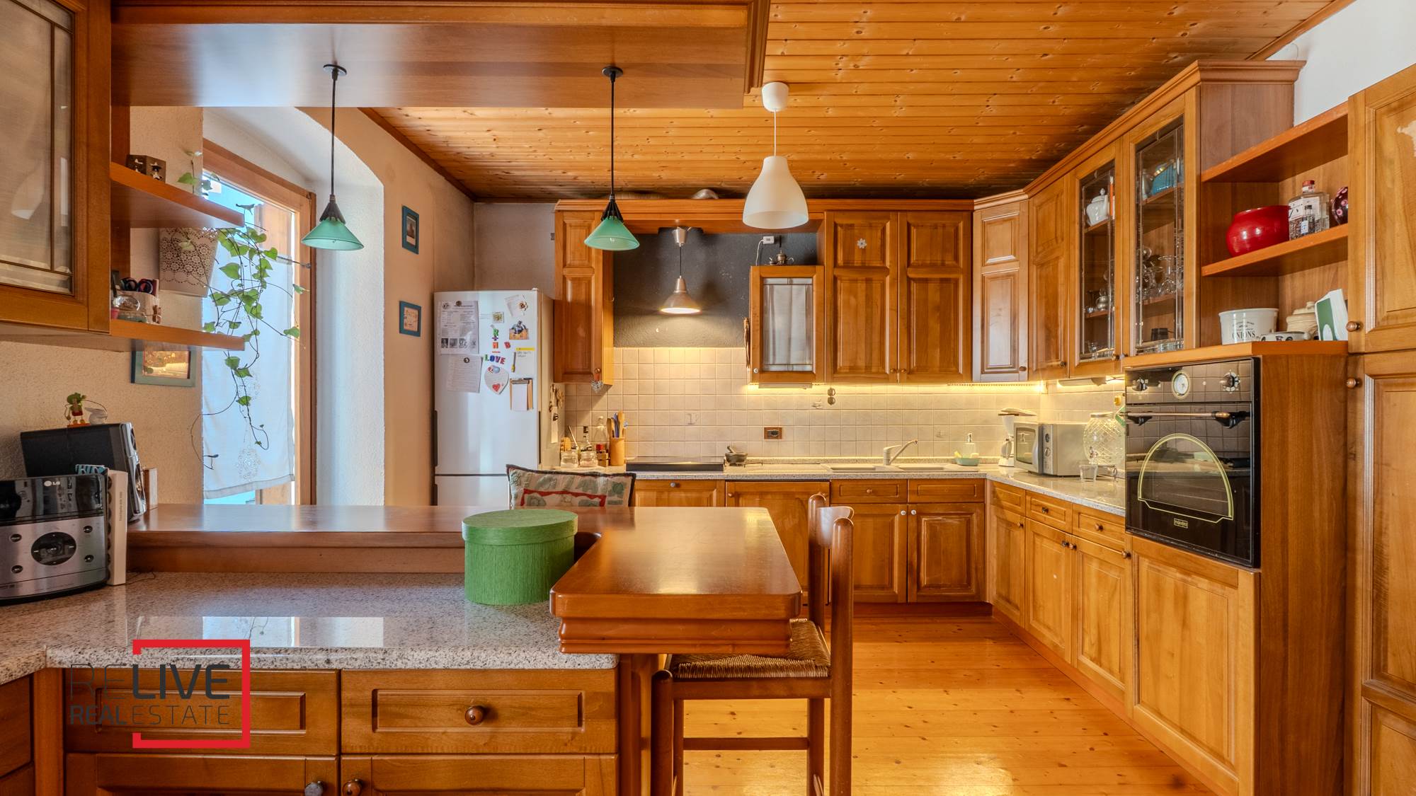 Con una superficie calpestabile di quasi 120 m², l’appartamento si compone di ampio soggiorno con camino e stufa in maiolica, cucina abitabile, due camere da letto e due bagni finestrati. Gli ambienti, spaziosi e ben distribuiti, sono impreziositi da ampie finestre che donano luminosità e calore naturale, mentre la tenda da sole garantisce comfort e privacy nelle giornate più soleggiate.