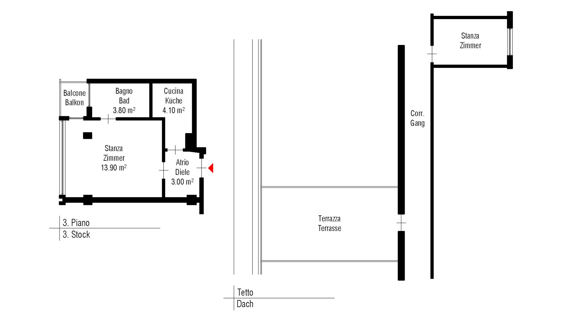 A completamento della proprietà, sempre all’ultimo piano, è presente una stanza accessoria di proprietà, versatile e funzionale, utilizzabile come hobbyraum, locale deposito o spazio multifunzionale, adattabile a diverse esigenze personali o di servizio, incrementando in modo significativo il valore complessivo dell’immobile.